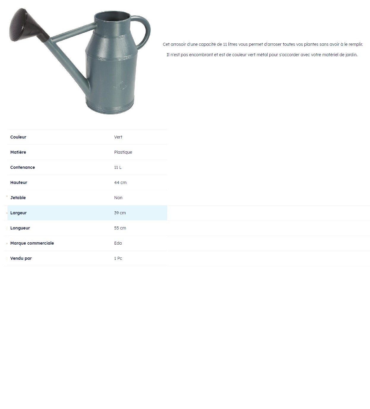 Cet arrosoir d'une capacité de 11 litres vous permet d'arroser toutes vos plantes sans avoir à le remplir.